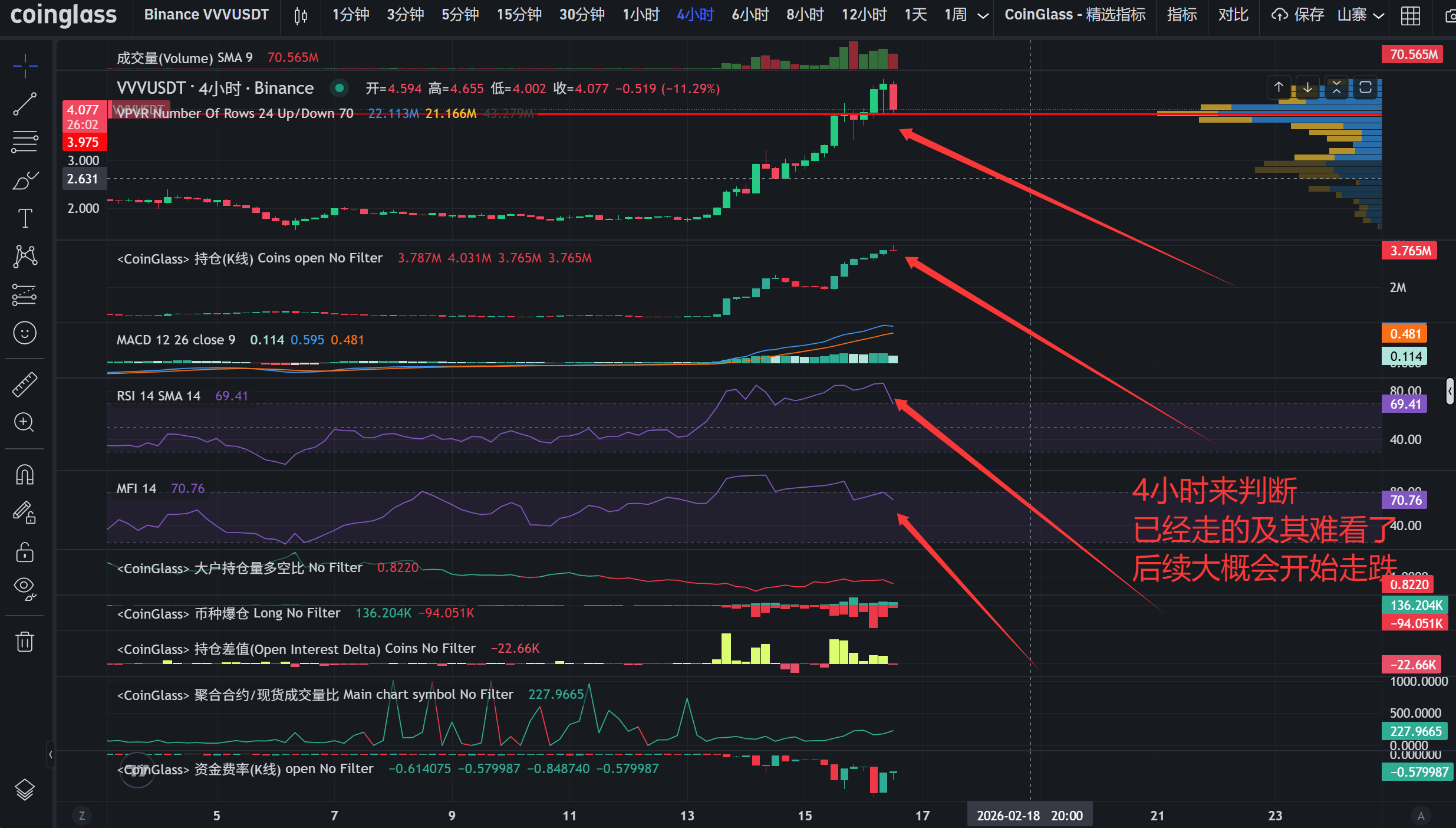VVV | 庄在4以上建仓了大量空单,均价4.5左右,300多万刀;没有办法有效拉上5 直接空就行,破5 站稳就要止损了 |